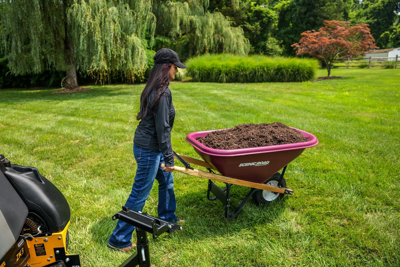 An innovative specialty hitch that allows anyone to haul 500lbs, 3x faster, all day long and still deliver every load with wheelbarrow precision. Pre-order with a $100 deposit.